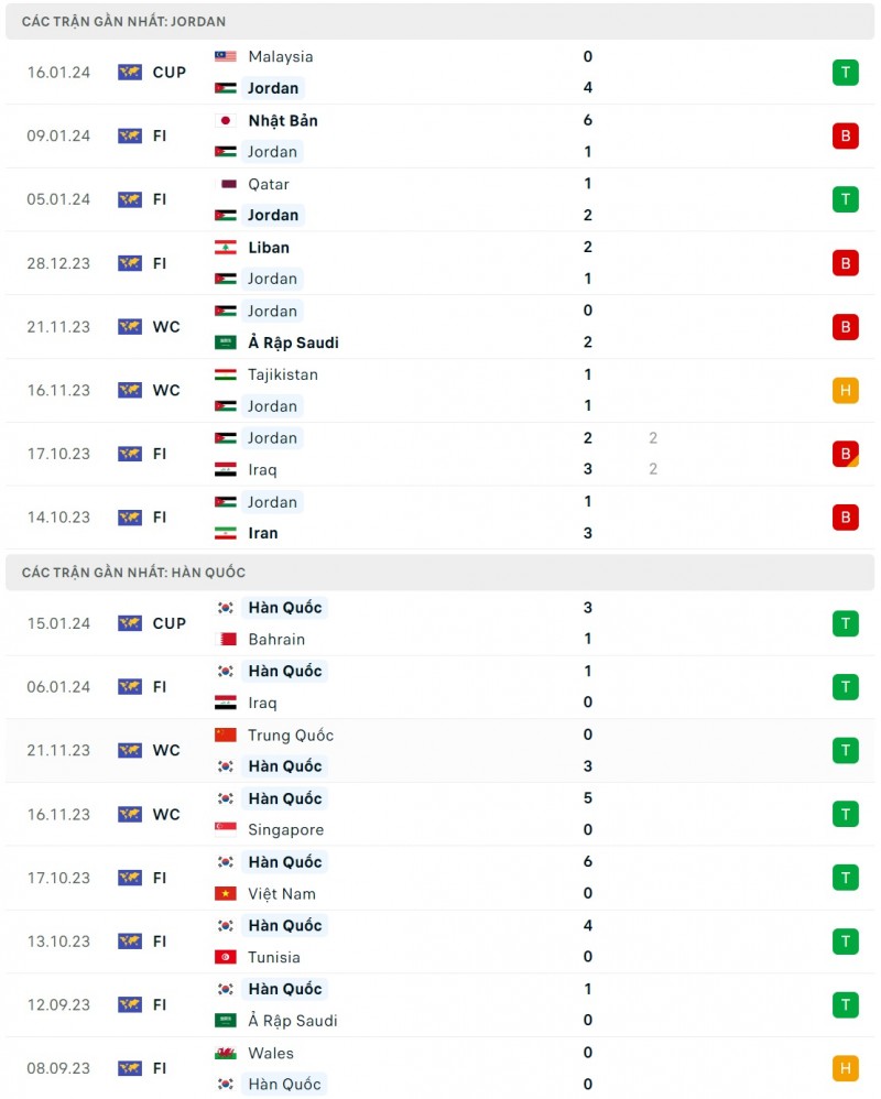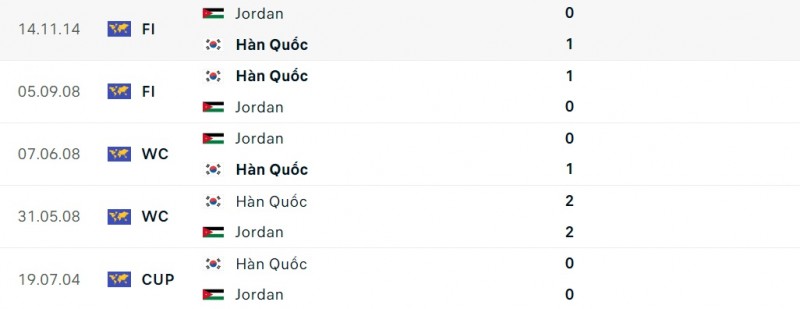 - Hàn Quốc bất bại với 3 chiến thắng và hòa 2 trận trước Jordan ở 5 lần gặp nhau trong quá khứ kể từ năm 2004.