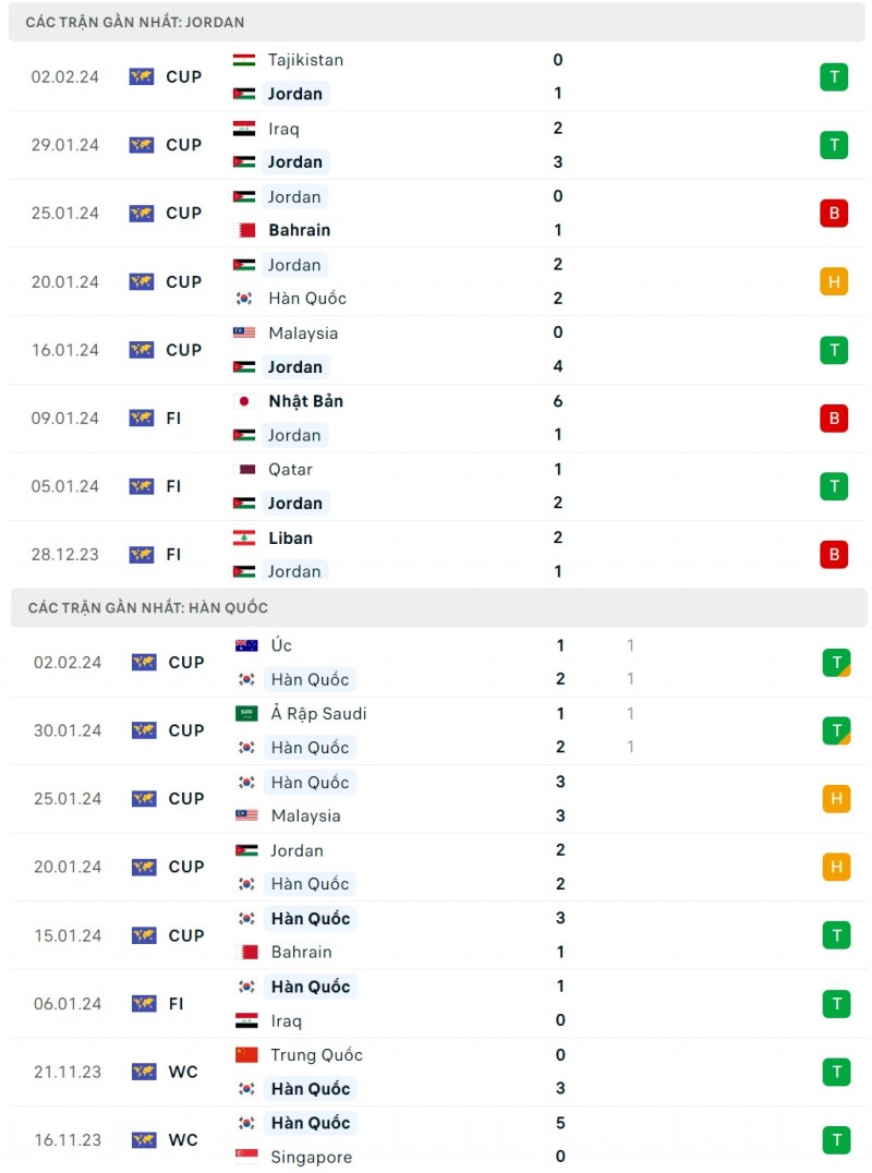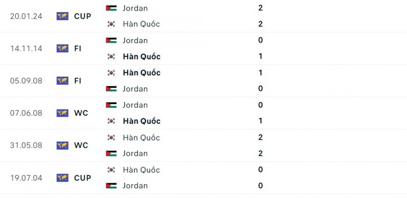 - Hàn Quốc đang giữ mạch bất bại trước Jordan với thành tích thắng 3, hòa 3.