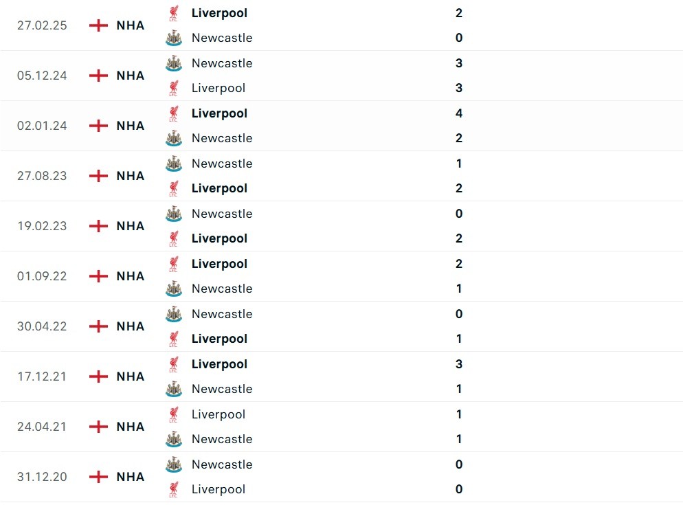 Liverpool đã ghi ít nhất 2 bàn trong 10 trong 11 trận sân nhà gần nhất đối đầu với Newcastle trên mọi đấu trường.