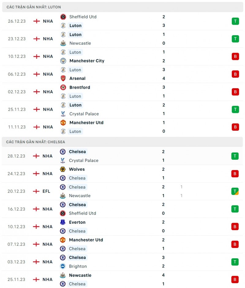 Luton thậm chí đã đánh bại Newcastle và Sheffield trước màn tiếp đón Chelsea. Với việc Luton đang sở hữu một hàng công có phong độ rất cao thời gian qua, đó sẽ là bước chạy đà tốt của đội bóng này cho màn chạm trán Chelsea sắp tới.