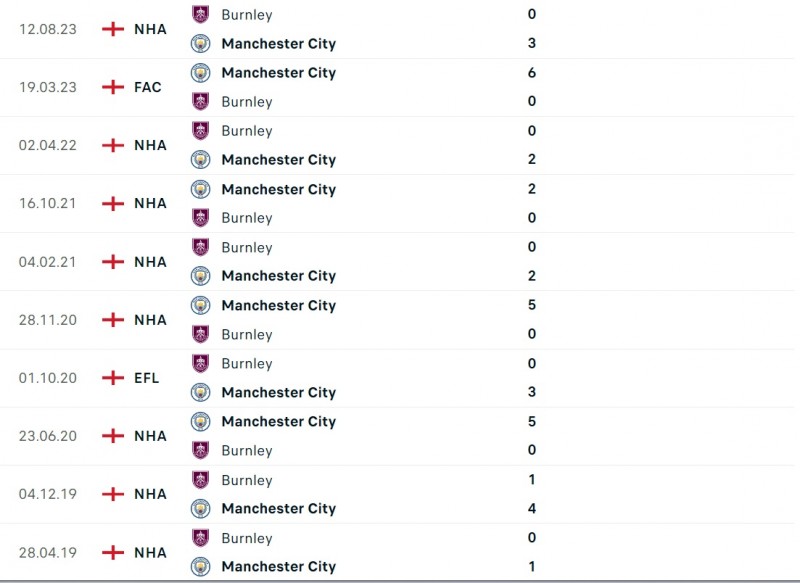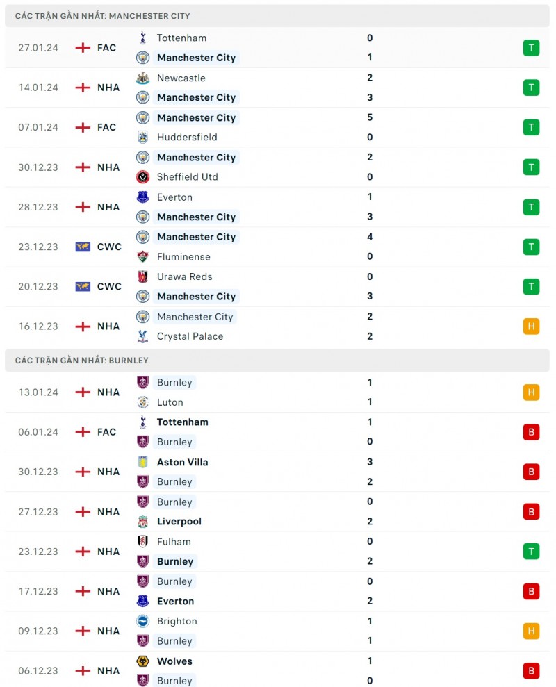 Man City đã dẫn trước trong hiệp một và cả trận trong 9 trận gần nhất gặp Burnley trên mọi đấu trường.