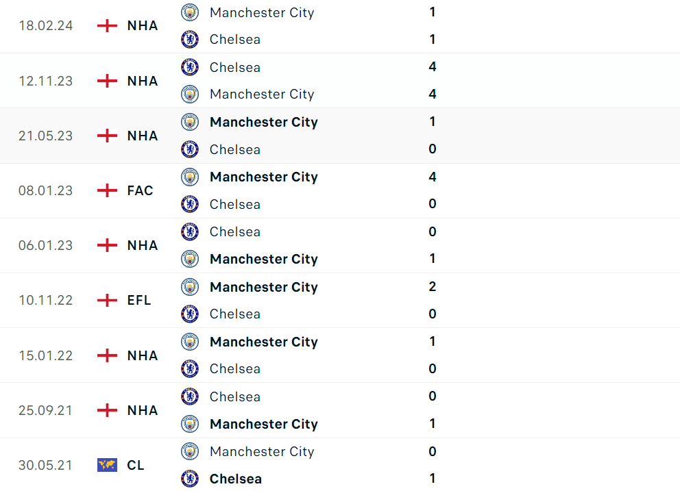 - Man City bất bại trong 8 trận gần nhất đối đầu Chelsea.