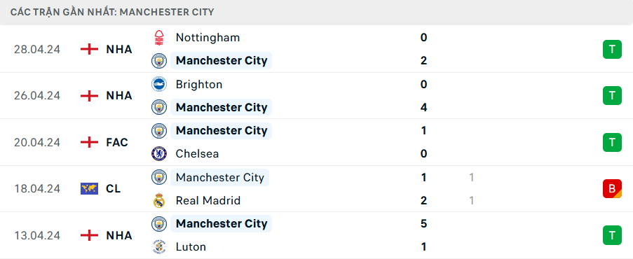 Với một phong độ thi đấu ổn định của mình, 'The Citizens' đang tiến những bước vô cùng chắc chắn tới chức vô địch Premier League thứ 4 liên tiếp. Cuối tuần trước, thầy trò Pep Guardiola đã vượt qua Nottingham Forest với tỉ số 2-0.