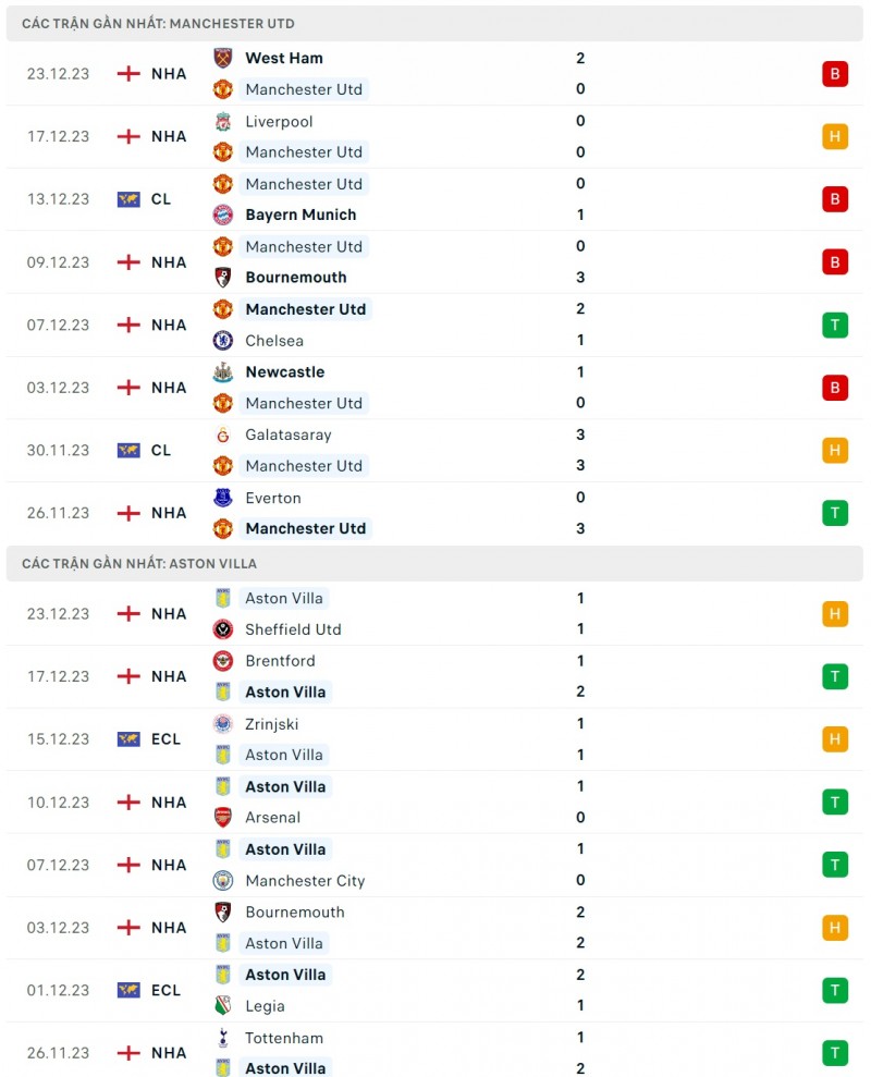 | Trận đấu giữa Man United vs Aston Villa sẽ diễn ra lúc 03h00 ngày 27/12 thuộc vòng 19 Ngoại hạng Anh |