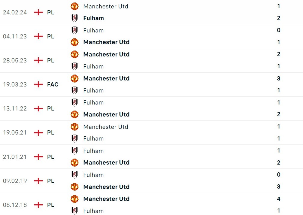 Đã có hơn 2.5 bàn thắng ở 9 trong 11 trận gần nhất giữa MU và Fulham trên mọi đấu trường.