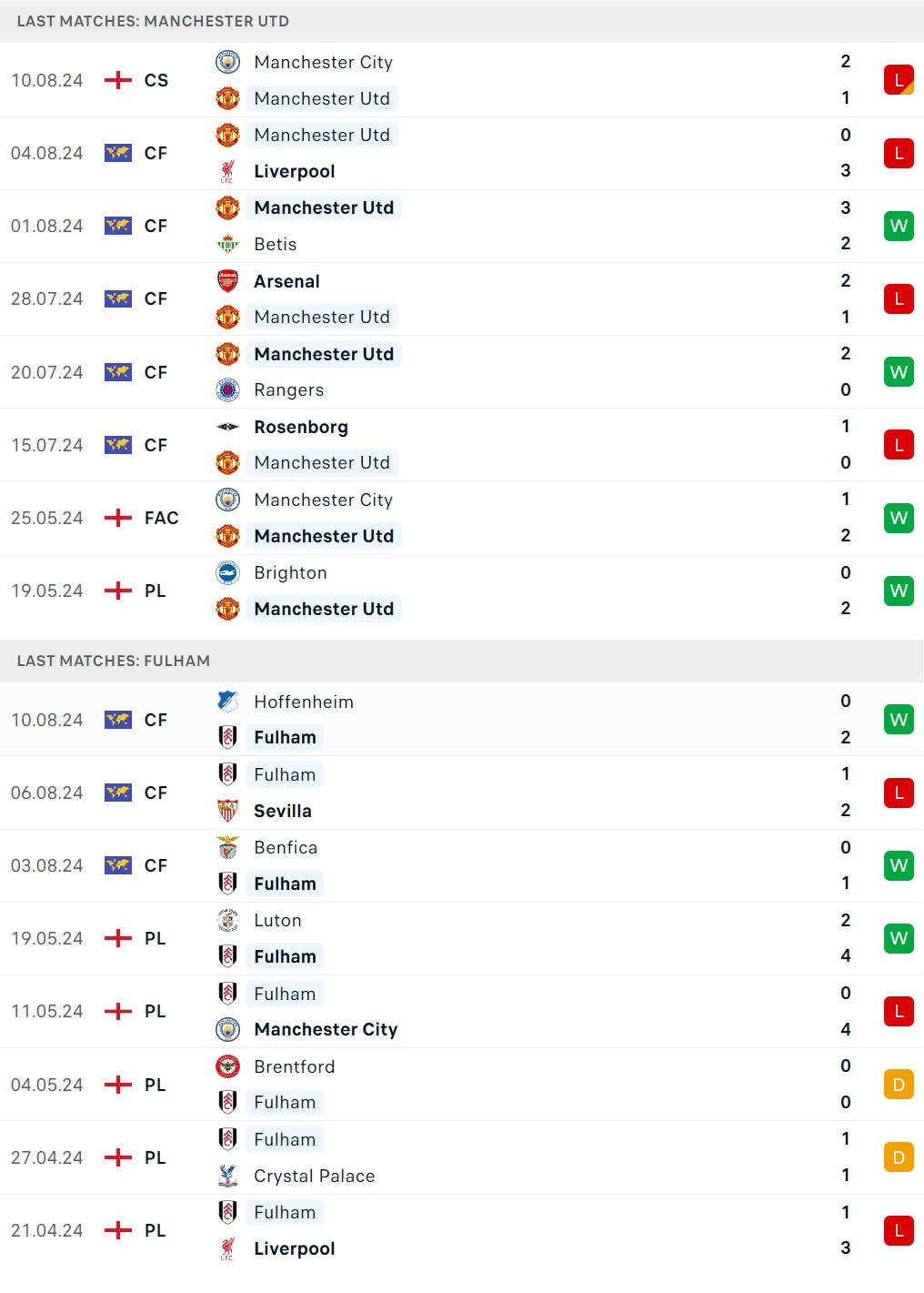 Thực tế Fulham đang có phong độ ổn định và tự tin vào khả năng gây bất ngờ. Với hàng thủ chưa ổn định và hàng công còn nhiều dấu hỏi, đây sẽ là thử thách không nhỏ cho HLV Ten Hag và các học trò trong việc kiếm 3 điểm ở vòng 1 sắp tới.