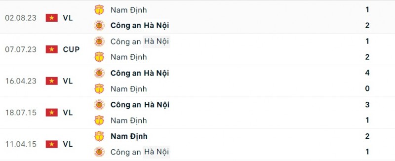 - CAHN thắng 3, hòa 1, thua 1 trong 5 màn đối đầu với Nam Định.