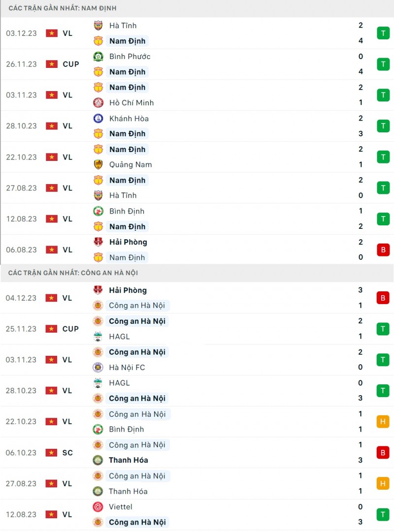 Trận Nam Định và CAHN diễn ra lúc 18h00 ngày 9/12, thuộc vòng 5 V-League 2023/2024