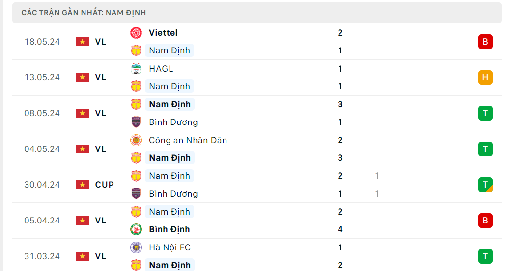 Nam Định đang không có phong độ ổn định. 5 trận gần nhất đội bóng thành Nam chỉ giành được có 2 chiến thắng. Rất may 2 chiến thắng này lại chính là trước hai đối thủ cạnh tranh trực tiếp là Công An Hà Nội và Bình Dương.