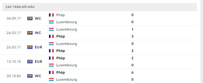 4 trận đối đầu vừa qua giữa Pháp và Luxembourg có tỷ số không quá 4 bàn/trận.