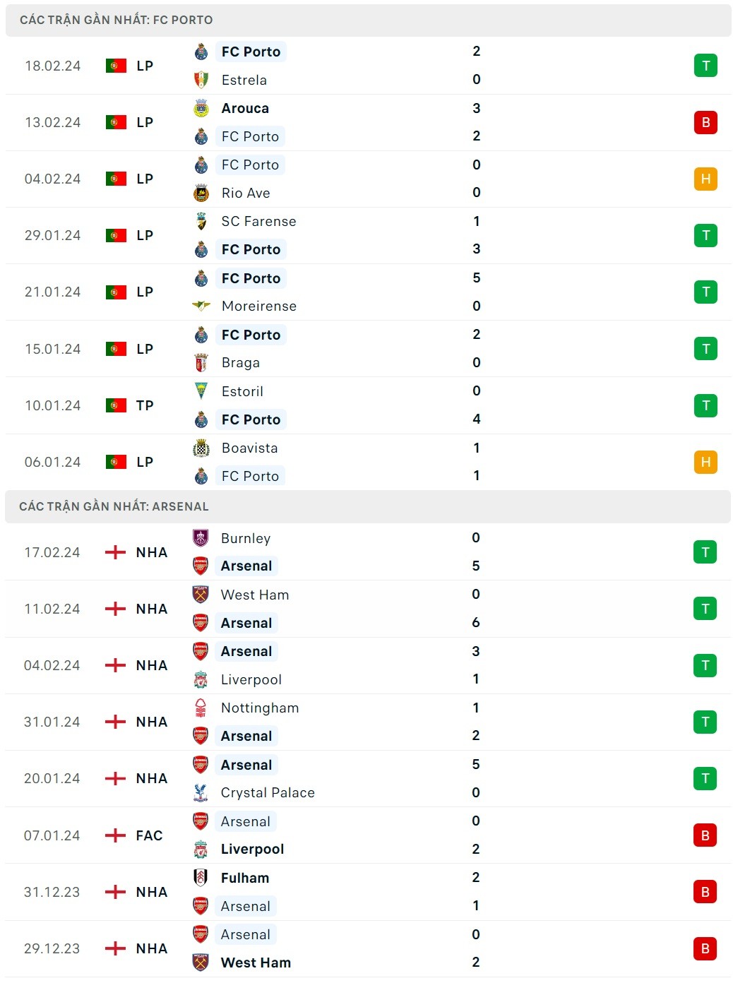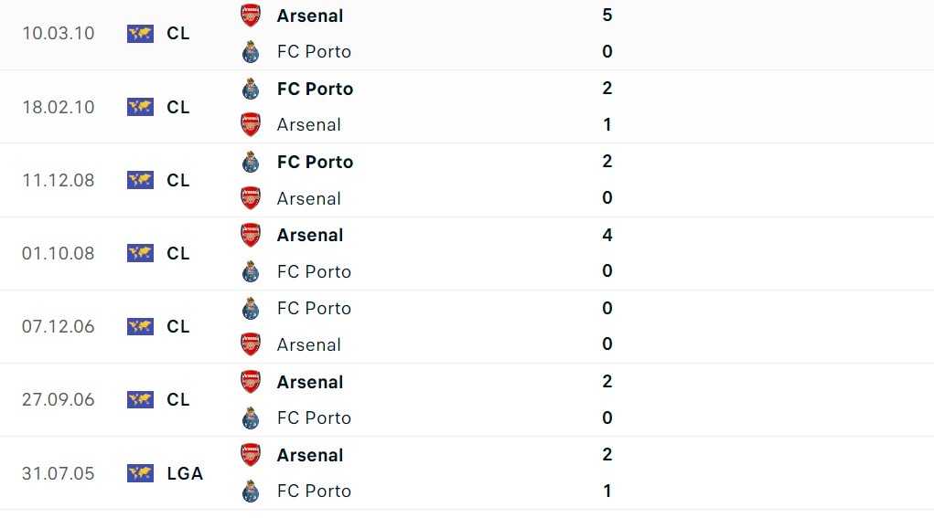- Porto thắng 2, hòa 1 và thua 3 trong 6 trận gần nhất đối đầu Arsenal.
