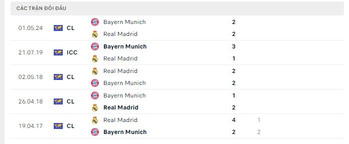 Đã có hơn 2.5 bàn thắng trong 6 trận gần nhất Real Madrid gặp Bayern Munich trên mọi đấu trường.