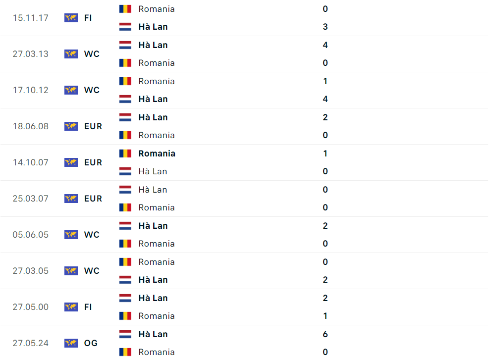 Hà Lan đã toàn thắng 4 trận gần nhất trước Romania trên mọi đấu trường.