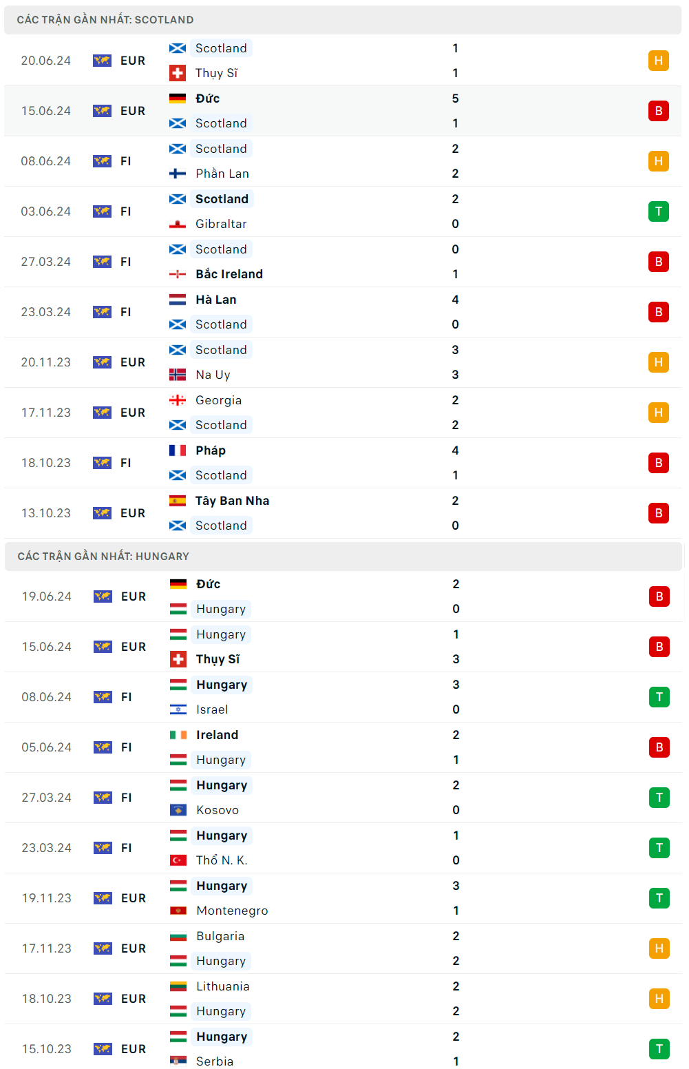 Scotland đã thua 3 trong 6 trận gần nhất trong khi Hungary thắng 3 trong 6 trận gần nhất.