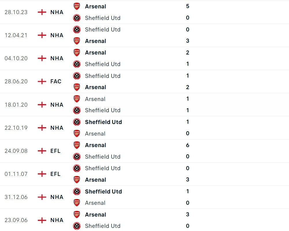 - Arsenal thắng 4 trận gần nhất gặp Sheffield United.