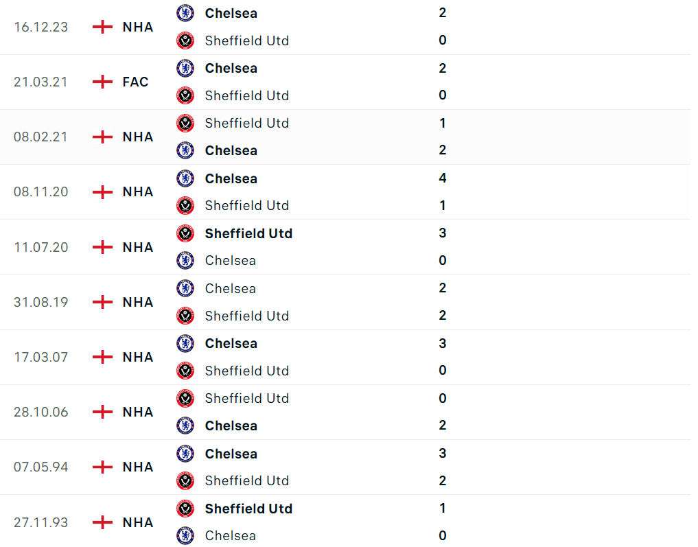 Theo thống kê các cầu thủ Chelsea đã toàn thắng trong 4 lần gần nhất gặp gỡ Sheffield United. Trong khuôn khổ Premier League, 'The Blues' chỉ để thua Sheffield 2 lần và cả 2 trận đấu này đều diễn ra tại Bramall Lane.