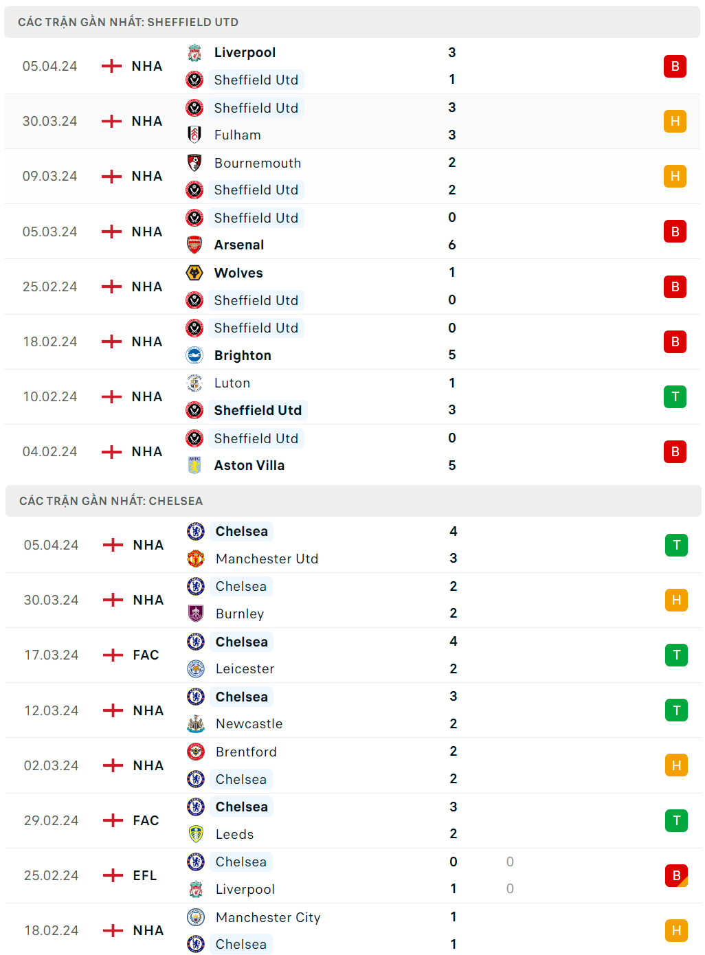 - Chelsea thắng 4 trận gần nhất đối đầu với Sheffield.