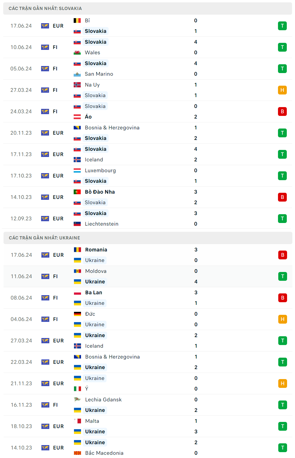 Thống kê trước trận Slovakia và Ukraine