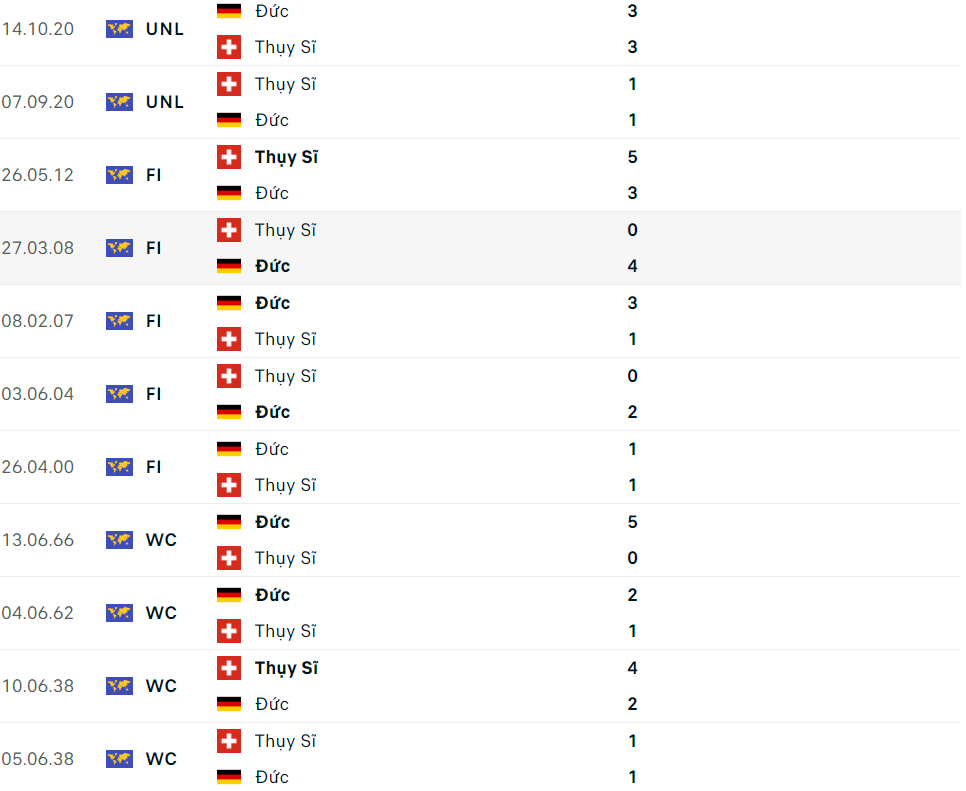 - Thụy Sĩ không thua trong 3 lần gần nhất đối đầu với Đức.