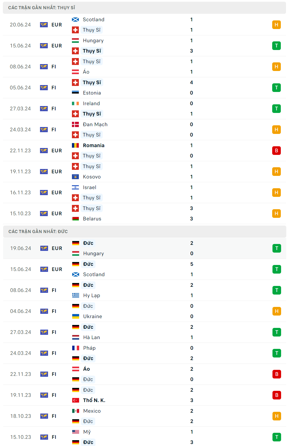 Đức ghi được đúng 2 bàn ở 7/11 trận gần nhất. Thụy Sĩ chỉ giữ sạch lưới 3 trong 10 trận gần đây. Thụy Sĩ cũng cho thấy khả năng ghi được bàn thắng nhờ những khoảnh khắc lóe sáng của các ngôi sao. Vì vậy, trận đấu tới có thể xuất hiện nhiều bàn.