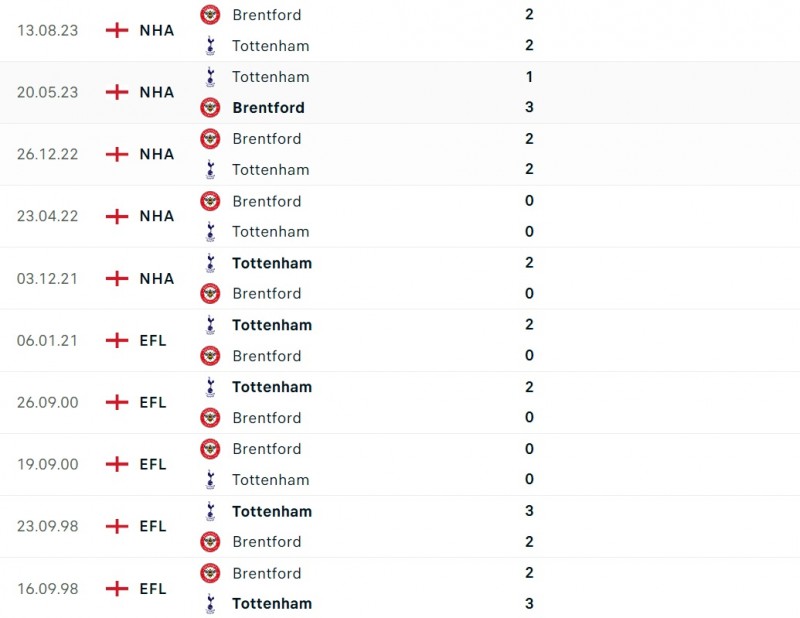 Tín hiệu tích cực duy nhất với đội khách có lẽ chỉ là việc Tottenham đã không thắng đội bóng cùng thành phố ở 4 lần đối đầu gần nhất, trong đó có 3 trận hòa và 1 trận thua. Đáng chú ý là 3 trong số các trận đấu đó có đã khép lại với 4 bàn thắng được ghi. Do đó nhiều khả năng trận đấu giữa Tottenham và Brentford sắp tới cũng sẽ xuất hiện nhiều bàn thắng.