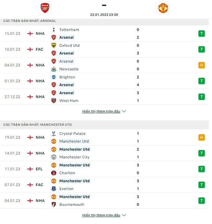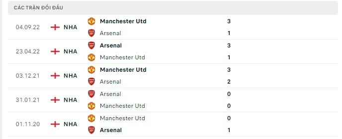 Thống kê đối đầu cho thấy sự cân bằng giữa Arsenal và MU khi cả hai cùng đang có hai trận thắng, 2 thua và 1 trận hòa sau 5 lần gặp gần nhất. Đây cũng là hai đội bóng có phong độ ổn định nhất Ngoại hạng Anh ở thời điểm hiện tại khi cùng bất bại ở 5 trận đấu gần đây.
