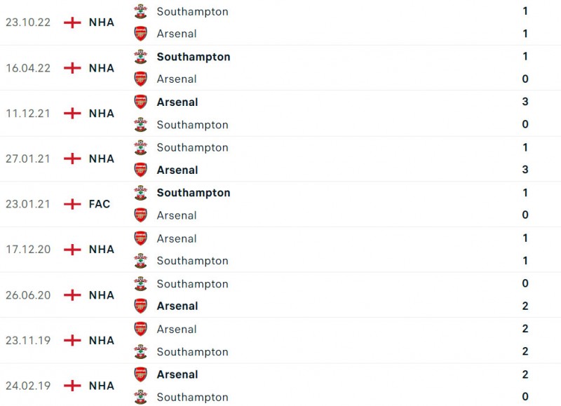 - Arsenal không thắng trong hai lần đối đầu Southampton gần nhất.