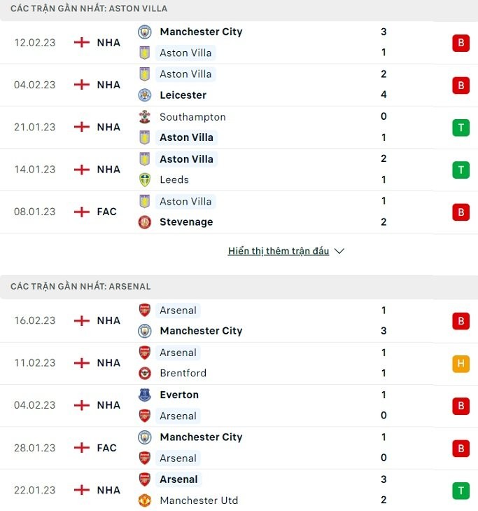 Trận Aston Villa và Arsenal sẽ diễn ra vào lúc 22h00 ngày 18/2