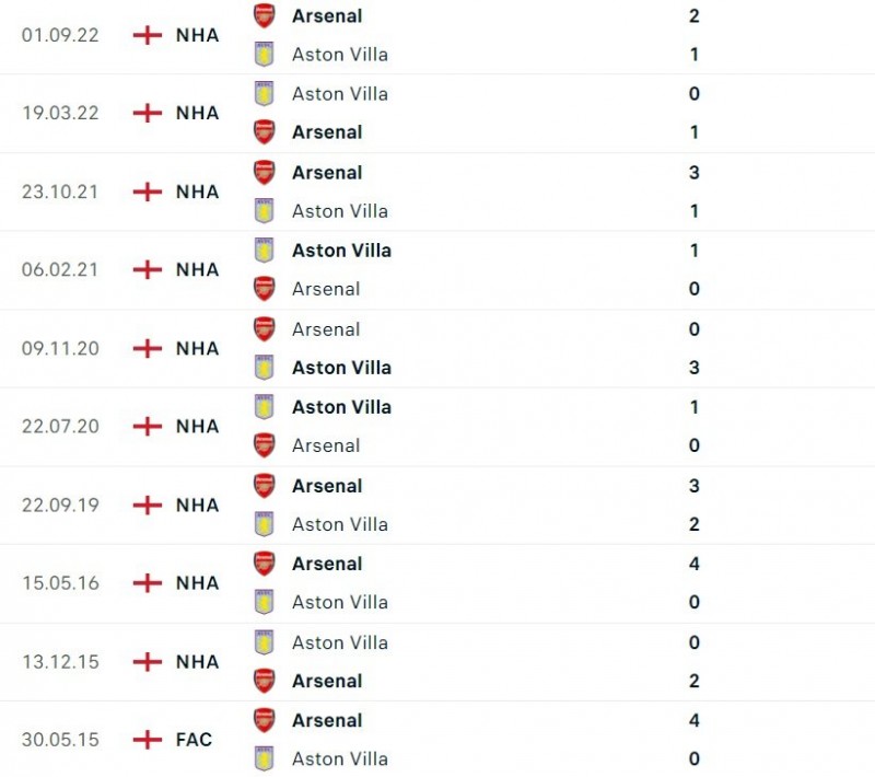 - Arsenal thắng 3, thua 2 trong 5 lần chạm mặt gần đây trước Aston Villa.
