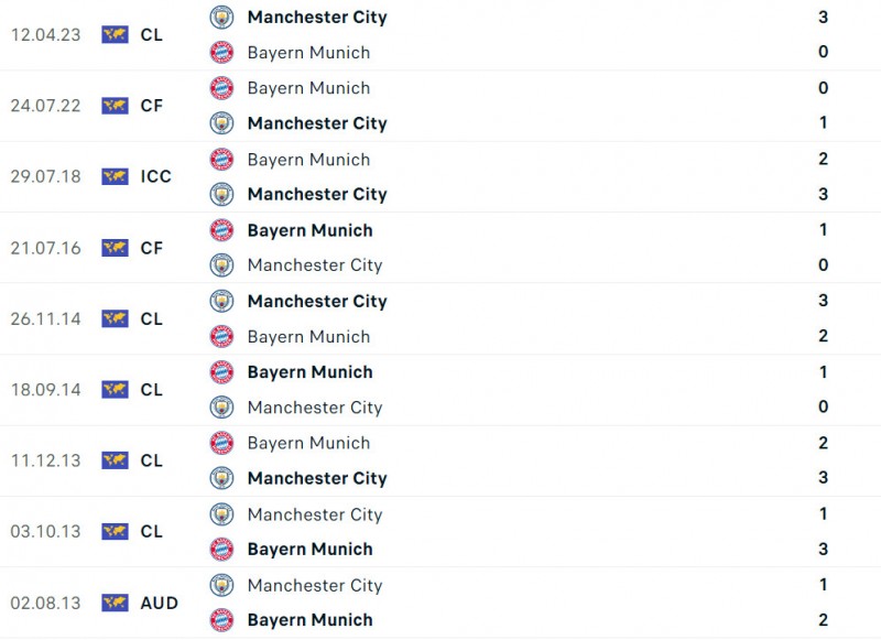 - Man City đánh bại Bayern Munich ở trong 3 trận đấu gần nhất.