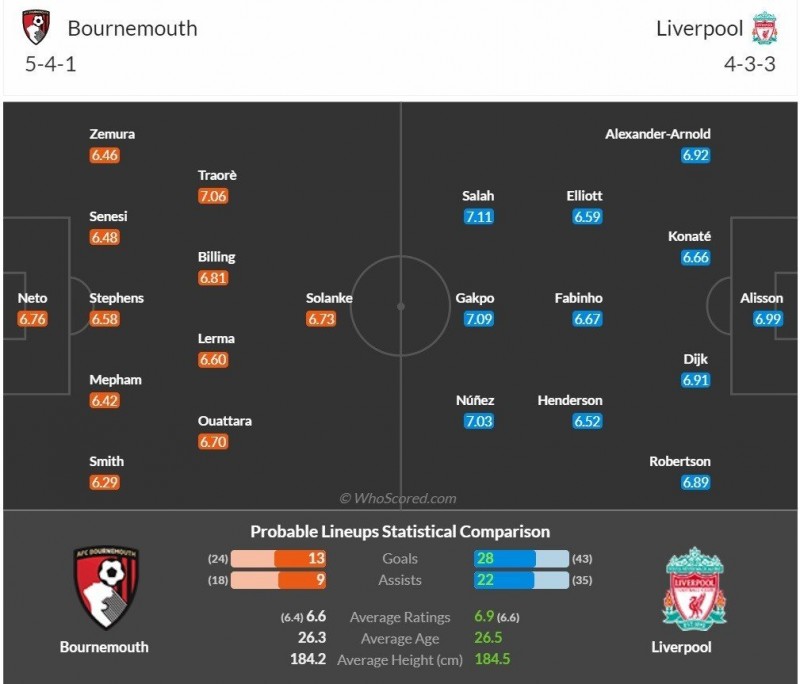 - Bournemouth: David Brooks, Junior Stanislas, Matías Vina ngồi ngoài vì chấn thương. Jefferson Lerma và Hamed Traore có thể thi đấu trở lại.
