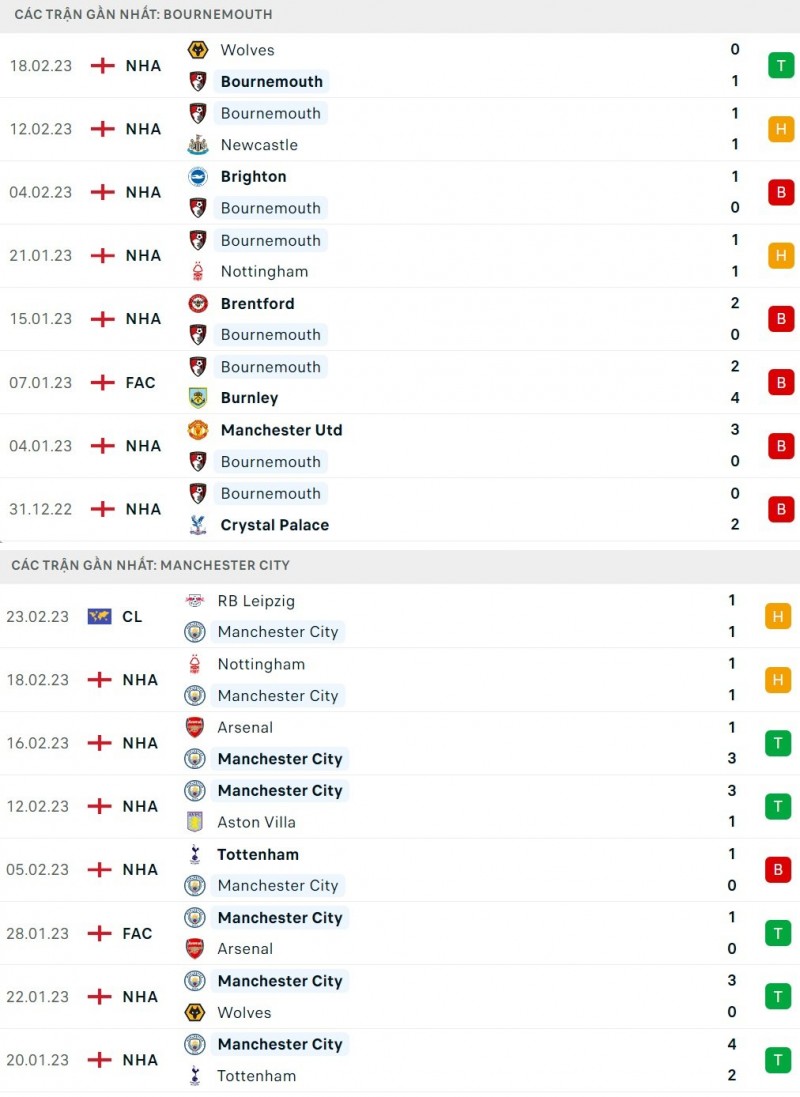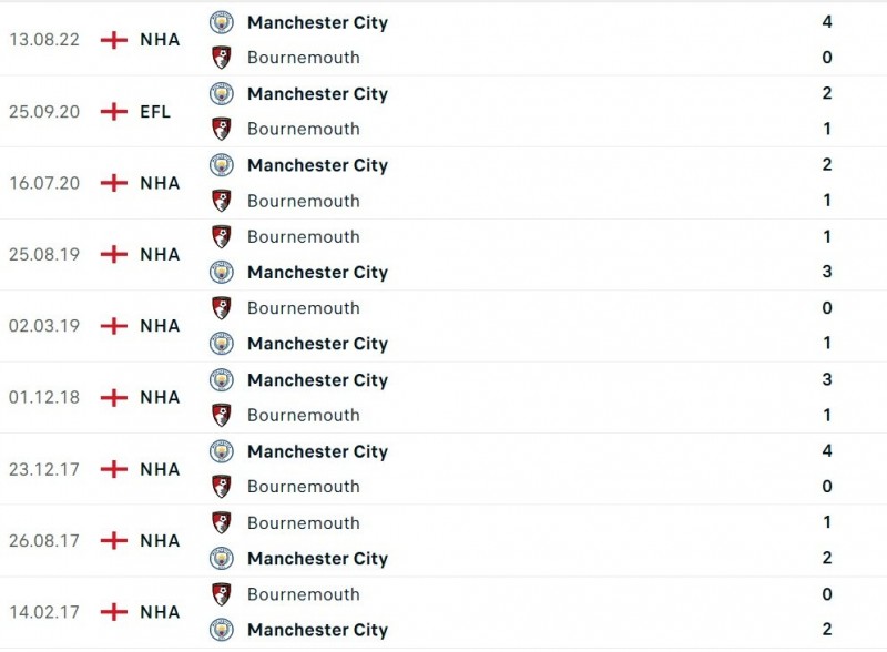 Cụ thể, trong 14 lần đối đầu giữa hai đội, Man City chỉ để hòa đúng 1 trận trước Bournemouth, còn lại là 13 trận thắng nghiêng về phía đội chủ sân Etihad. Từ khi Bournemouth thăng hạng vào năm 2015, cho tới nay Man City đã toàn thắng 12 trận trước đội bóng này. Ở trận lượt đi mùa giải năm nay, các học trò của Pep cũng dễ dàng vượt qua đối thủ với cách biệt 4-0.