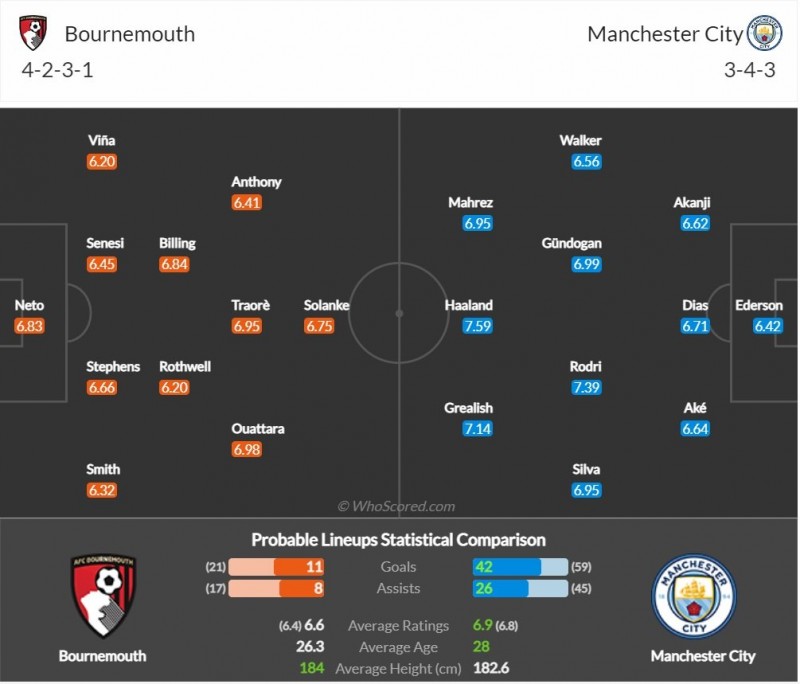 Dự đoán tỷ sốBournemouth và Man City: 0-3