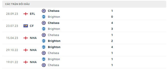 Brighton đã không thắng Chelsea trong 5 trận gần nhất trên mọi đấu trường. Việc hàng thủ đội khách vẫn chưa giữ sạch lưới lần nào ở Ngoại hạng Anh mùa này càng khiến trận đấu tại Stamford Bridge dễ xuất hiện nhiều bàn thắng.