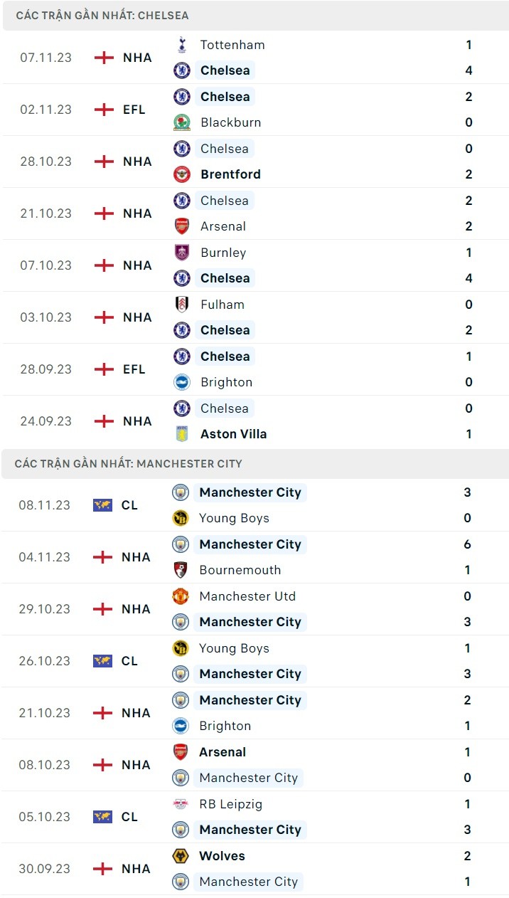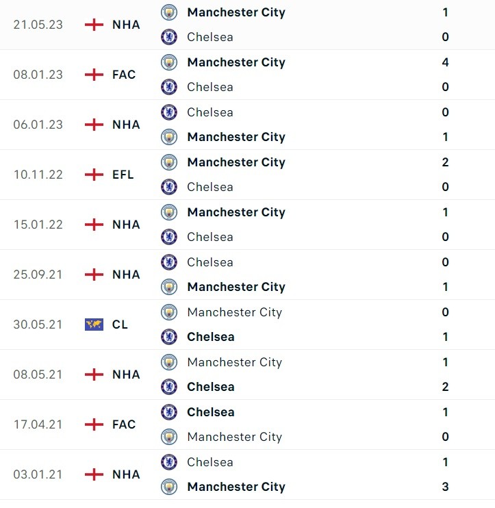 Kể từ khi để thua Chelsea ở trận chung kết Champions League mùa giải 2020/21, Man City đã hoàn toàn lấn lướt đội bóng thành London ở thành tích đối đầu. Theo đó, họ thắng cả 6 trận đối đầu tại mọi đấu trường kể từ mùa 2021/22 cho tới nay. Với phong độ thăng hoa và đội hình lành lặn, rõ ràng Man City cũng rất tự tin vào việc giành 3 điểm tại Stamford Bridge.
