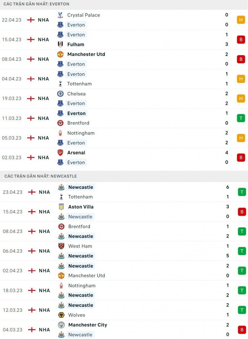 - Trong 6 trận gần nhất ở Premier League, Everton chỉ thắng vỏn vẹn 1 trận, hoà 3, thua 2 trận. Trong khi đó, Newcastle thắng 5, thua 1 trận.