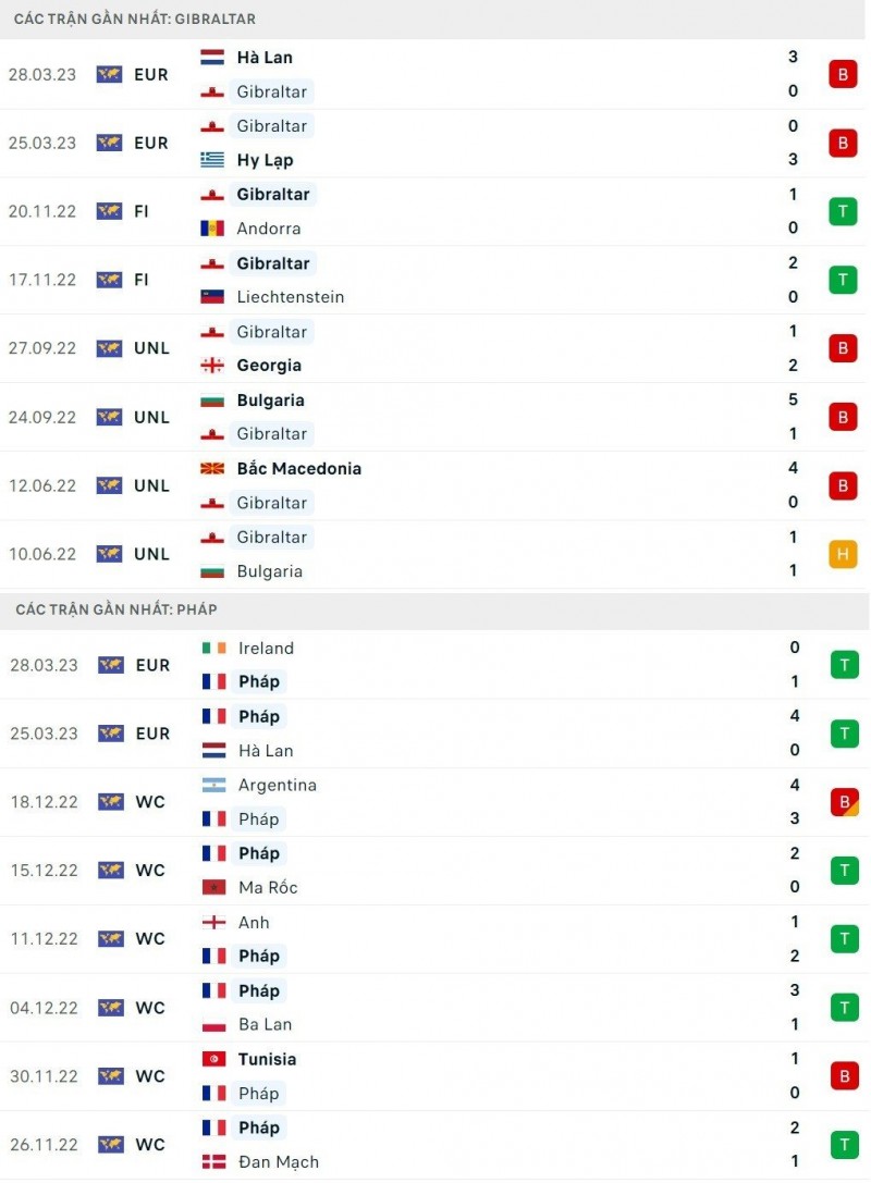 Trái ngược với phong độ thi đấu của 'Les Bleus', Gibraltar đã toàn thua trong hai lượt trận đầu tiên ở bản B. Họ thua với cùng tỷ số 0-3 trước Hy Lạp và Hà Lan. Rộng hơn sau 20 trận đấu ở vòng loại EURO, đội bóng này vẫn đang tìm kiếm điểm số đầu tiên, chứ chưa dám mơ tới chiến thắng lịch sử.