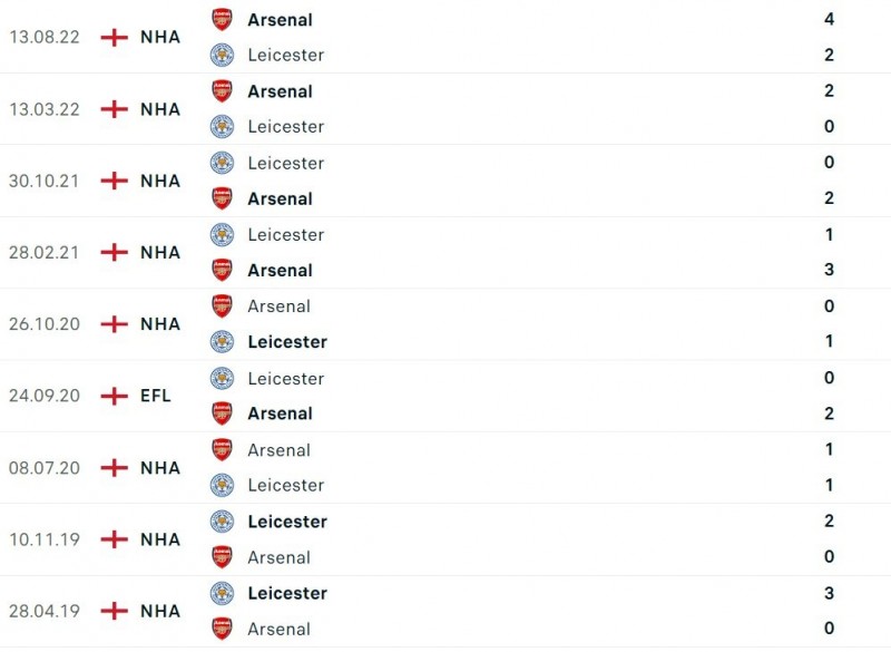 Trong quá khứ, Leicester đã liên tục trắng tay khi đón tiếp Arsenal trên sân King Power ở 3 trận đấu gần nhất. Chiến thắng gần nhất của 'Bầy cáo' trước đại diện thành London trên sân nhà là ở lượt về mùa giải 2018/2019 với thắng lợi 2-0 chung cuộc.