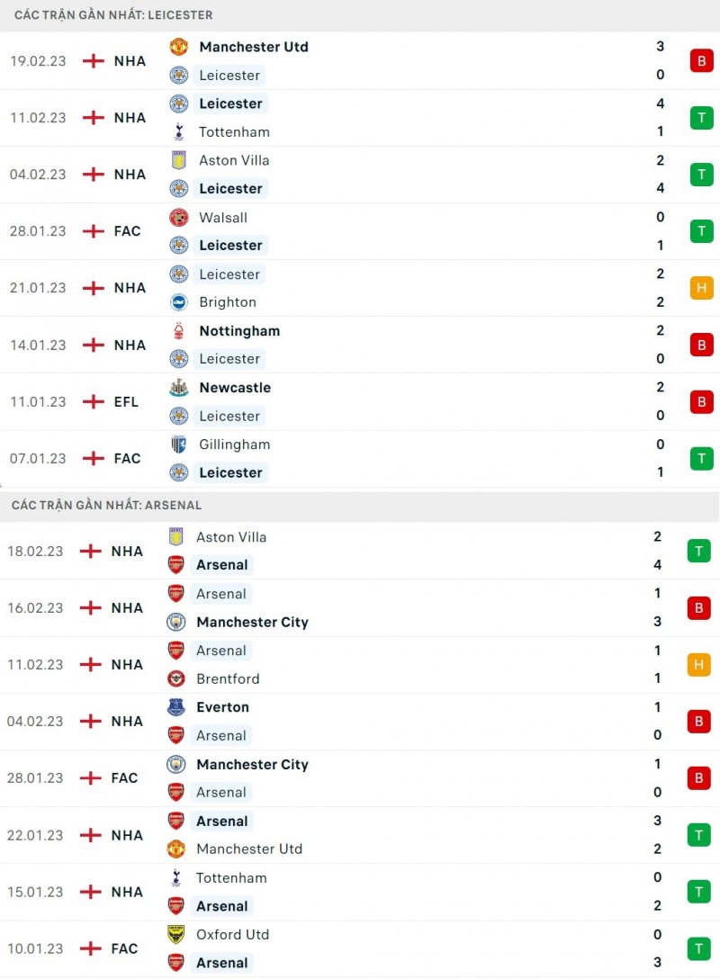 Trận đấu giữa Leicester vs Arsenal sẽ diễn ra lúc 22h00 ngày 25/2, trong khuôn khổ vòng 25 Ngoại hạng Anh