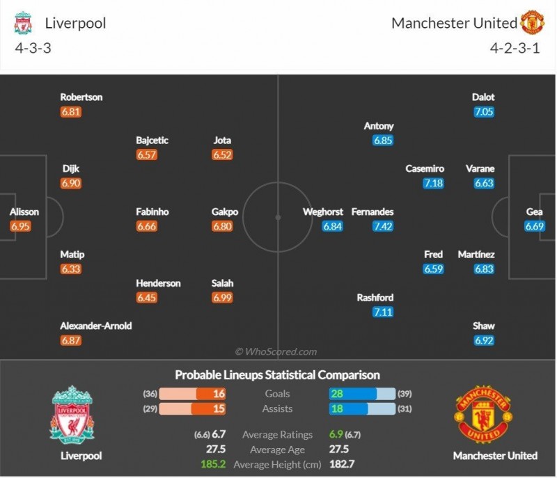 Trong khi MU gần như sẽ có đội hình mạnh nhất thì phía Liverpool sẽ tiếp tục không có sự phục vụ của Gomez, Thiago, Ramsay, Arthur vì chấn thương. Tuy nhiên, đội bóng của HLV Jurgen Klopp vốn đã quen với việc thiếu hụt nhân sự ở mùa giải này nên cơ hội sẽ tới tay những cầu thủ trẻ như Bajcetic, Elliott cho màn so tài sắp tới tại Anfield.