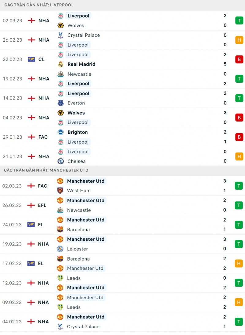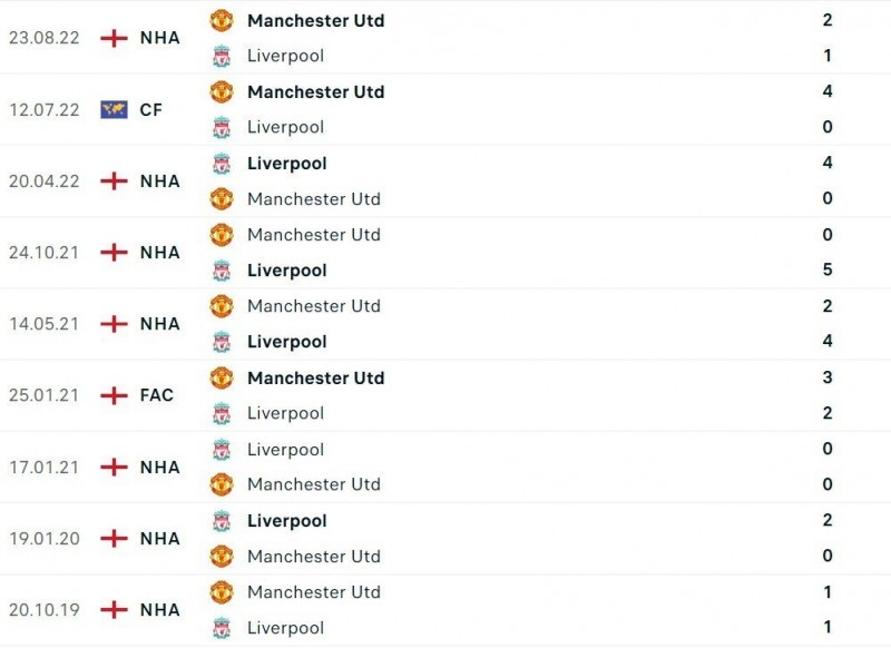 - Trong 5 lần đối đầu gần nhất, Liverpool đã thắng 3 và thua 2 trước Man United.