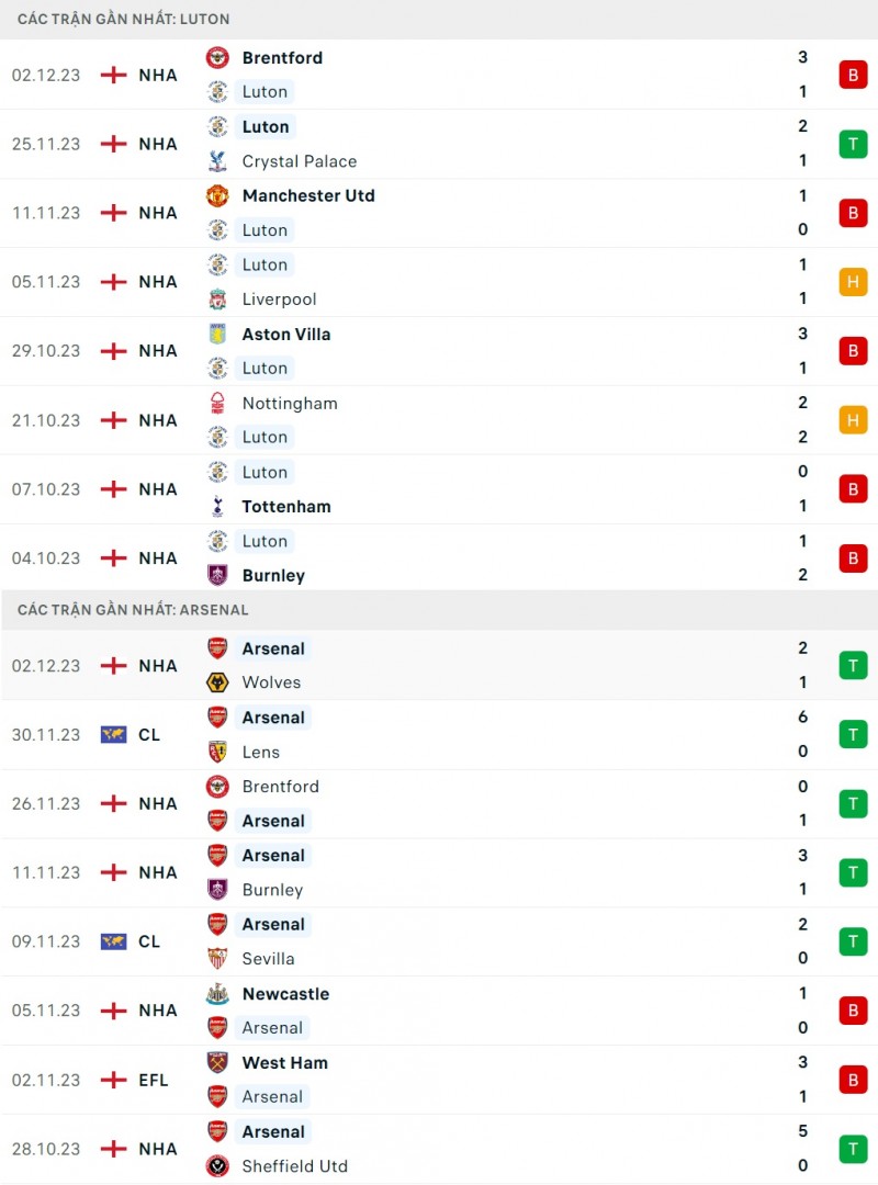 | Trận đấu giữa Luton và Arsenal sẽ diễn ra lúc 03h15 ngày 06/12 trong khuôn khổ vòng 15 Ngoại hạng Anh. |
