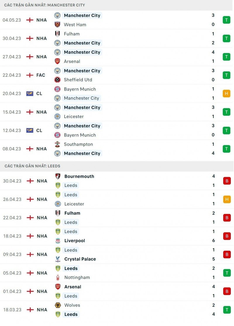 Tại vòng 35 Ngoại hạng Anh 2022/2023 vào cuối tuần này, câu lạc bộ Man City sẽ được thi đấu trên sân nhà Etihad để tiếp đón đội khách Leeds United.