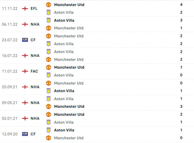 Dù không sở hữu đội hình được đánh giá cao như Tottenham hay Sevilla nhưng Aston Villa không phải là đối thủ dễ chơi với Man Utd. Bằng chứng là trong 3 lần đối đầu giữa 2 đội gần đây tại giải Ngoại hạng Anh, họ thắng 2, hòa 1 trước đội bóng thành phố Manchester.