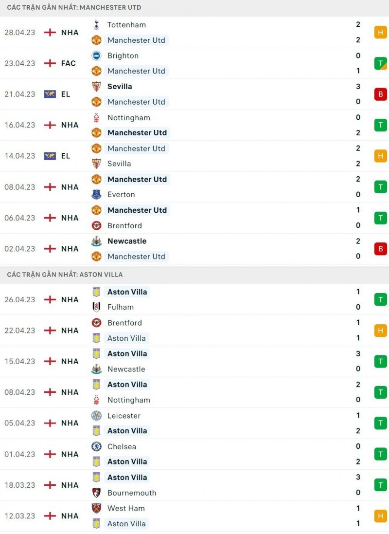 - 4 lần đối đầu giữa 2 đội gần đây kết thúc chẵn bàn thắng. 6/8 trận gần đây của MU và 9/12 trận vừa qua của Aston Villa đều có tổng số bàn thắng là số chẵn.