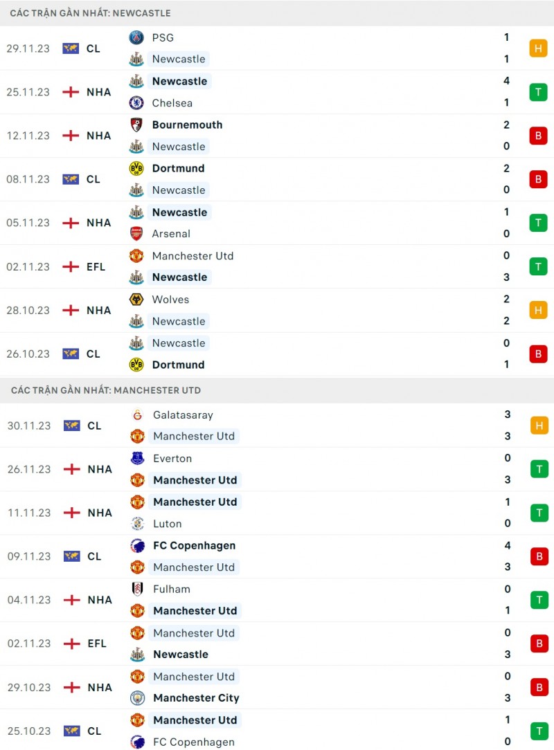 Tại vòng 14 Ngoại hạng Anh 2023/2024, một trận cầu rất được người hâm mộ chờ đợi chính là màn so tài giữa hai đội bóng nằm trong tốp 4 trên bảng xếp hạng mùa trước, Newcastle và Man United.