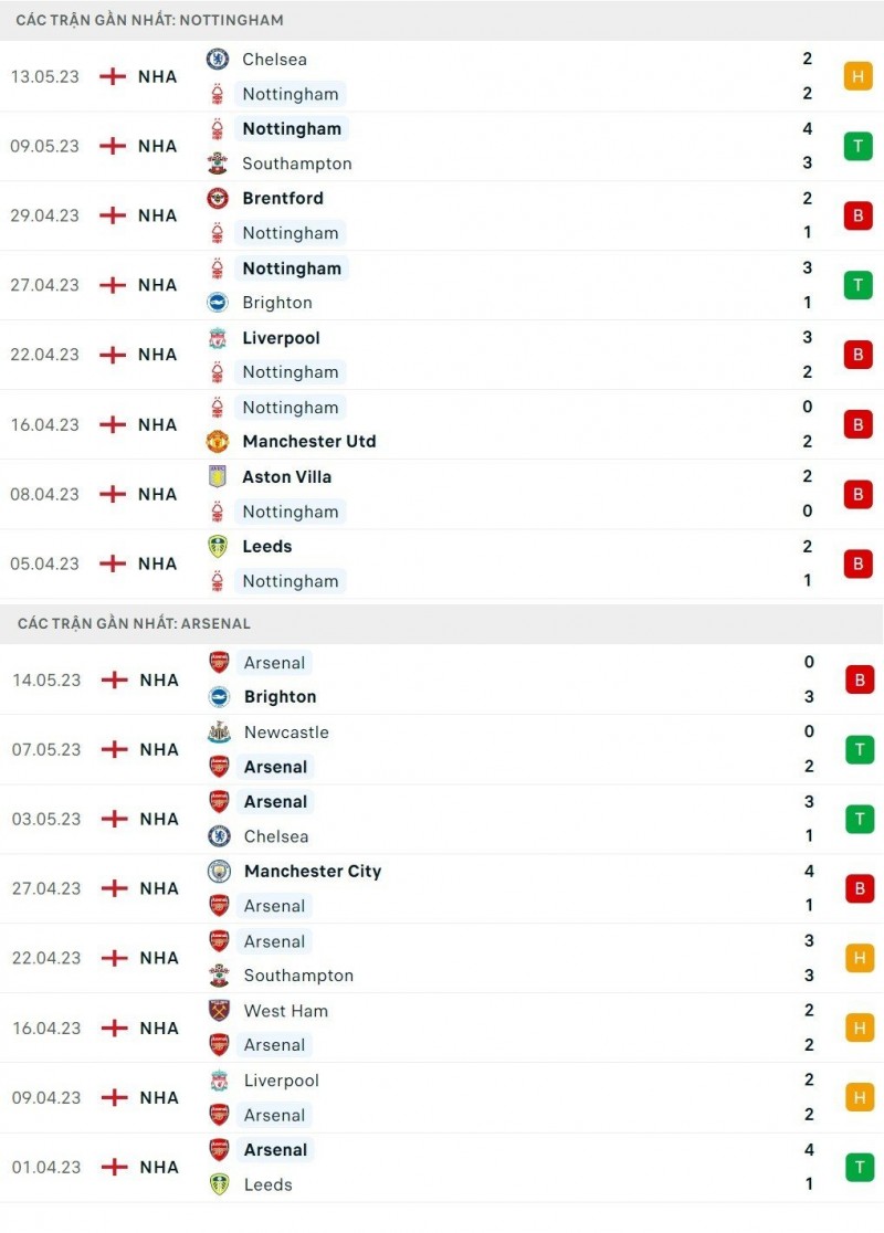 Thông tin trước trận Nottingham và Arsenal