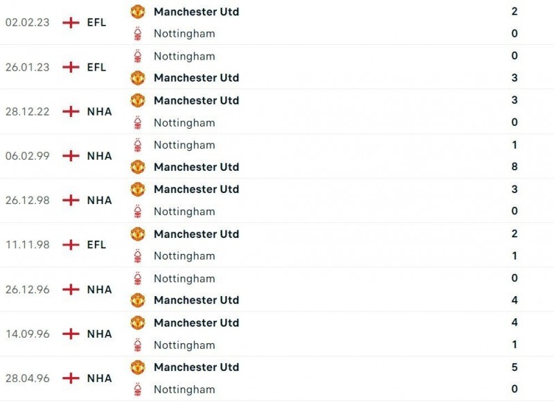 | Đối đầu giữa Nottingham và Man Utd |