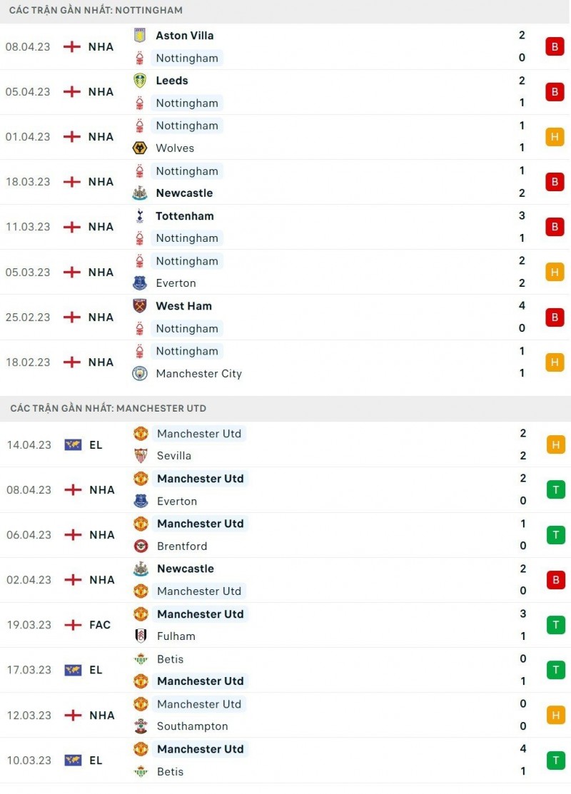 Tuy nhiên lịch sử đang không ủng hộ Nottingham bởi trong 9 màn so tài gần nhất giữa hai bên, thắng lợi đều thuộc về phía Quỷ đỏ. Và sẽ không bất ngờ nếu như một kết quả tương tự rất có thể sẽ xảy ra khi hai đội gặp nhau ở sân City Ground vào tối mai 16/4.