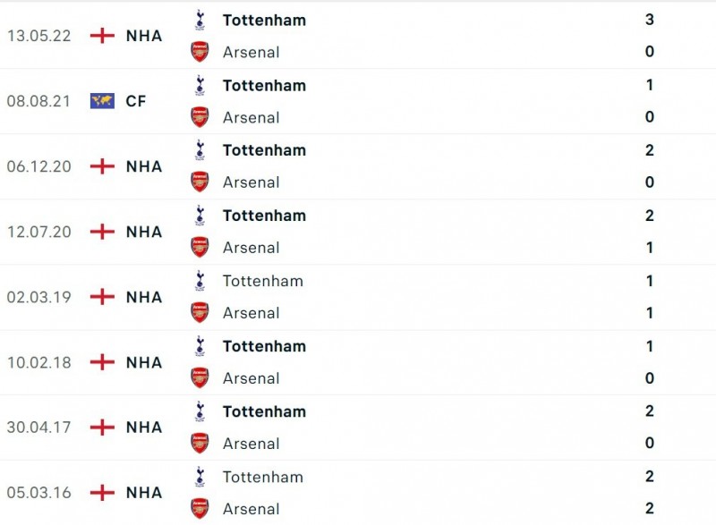 Dẫu vậy, lần cuối 'Những khẩu thần công' giành chiến thắng khi tới làm khách tại cúp Liên đoàn Anh vào năm 2015. Kể từ đó tới nay, đã qua 7 trận đấu liên tiếp họ không thể đánh bại đội bóng chủ nhà Tottenham, trong đó có tới 6 thất bại.